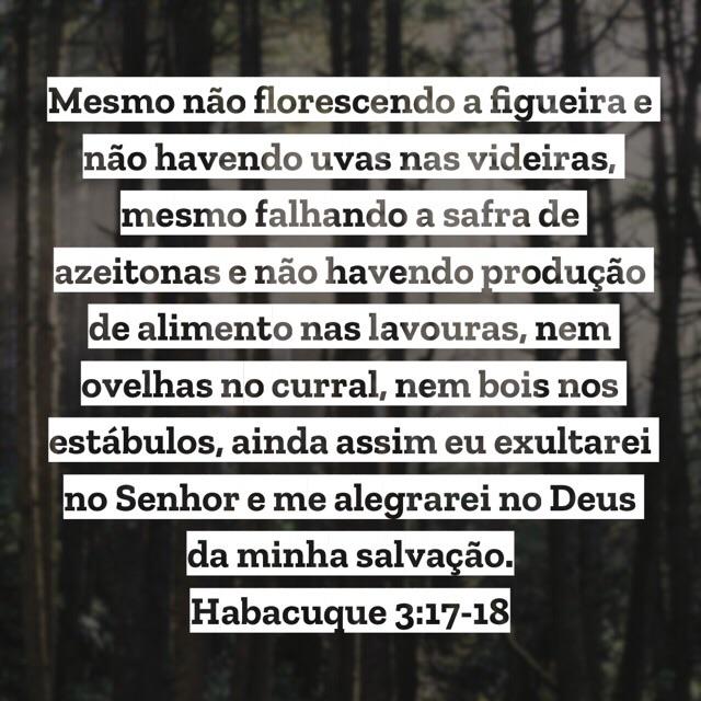 Talvez você esteja a se perguntar:. Em habacuque 3:17 as palavras do autor relatam a possibilidade de uma série de acontecimentos negativos. A figueira tem um papel muito importante na bíblia , ….. Em habacuque 3:17 as palavras do autor relatam a possibilidade de uma série de acontecimentos negativos.